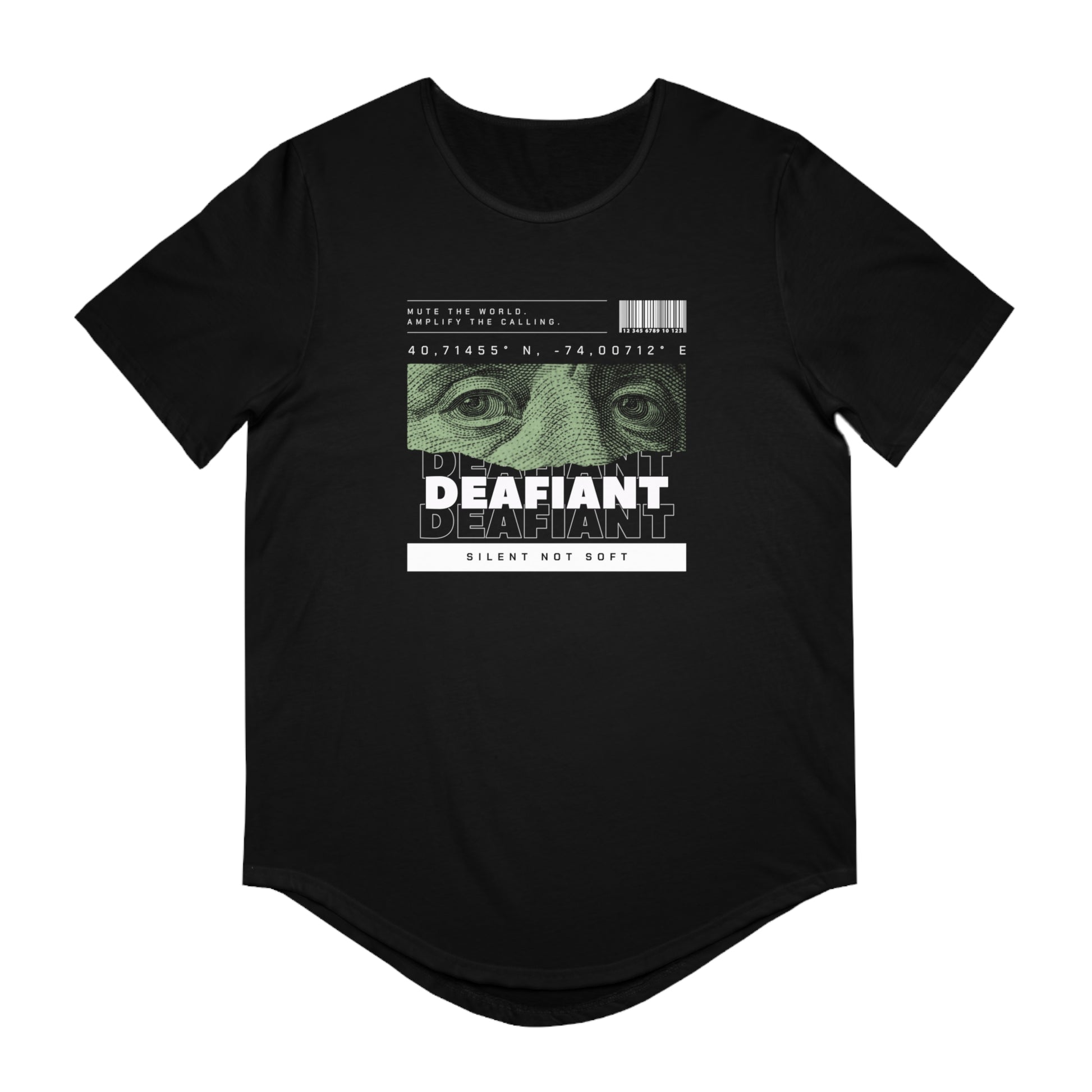 This Men's Jersey Curved Hem Tee is the perfect blend of style and comfort, designed for those who dare to express their individuality. The striking graphic alongside the unique curved bottom hem makes this tee a trendy addition to any wardrobe. The DEAFIANT Deaf Money Talks Tee is bold, unapologetic, and built to rep deaf culture and deaf business with pride. Made from premium soft cotton with a unisex fit, it’s perfect for everyday wear, protests, meetups, or just flexing your identity without saying a word.