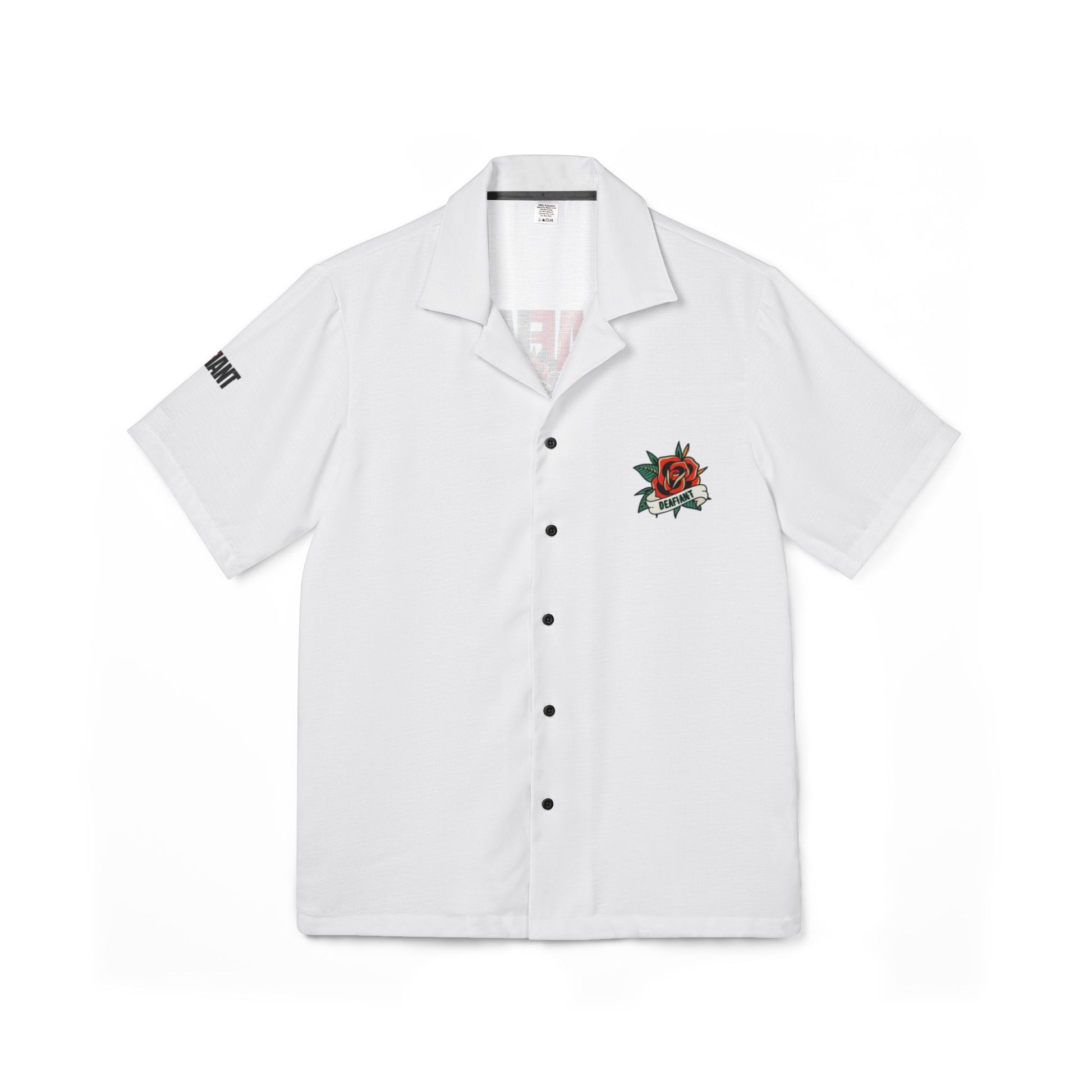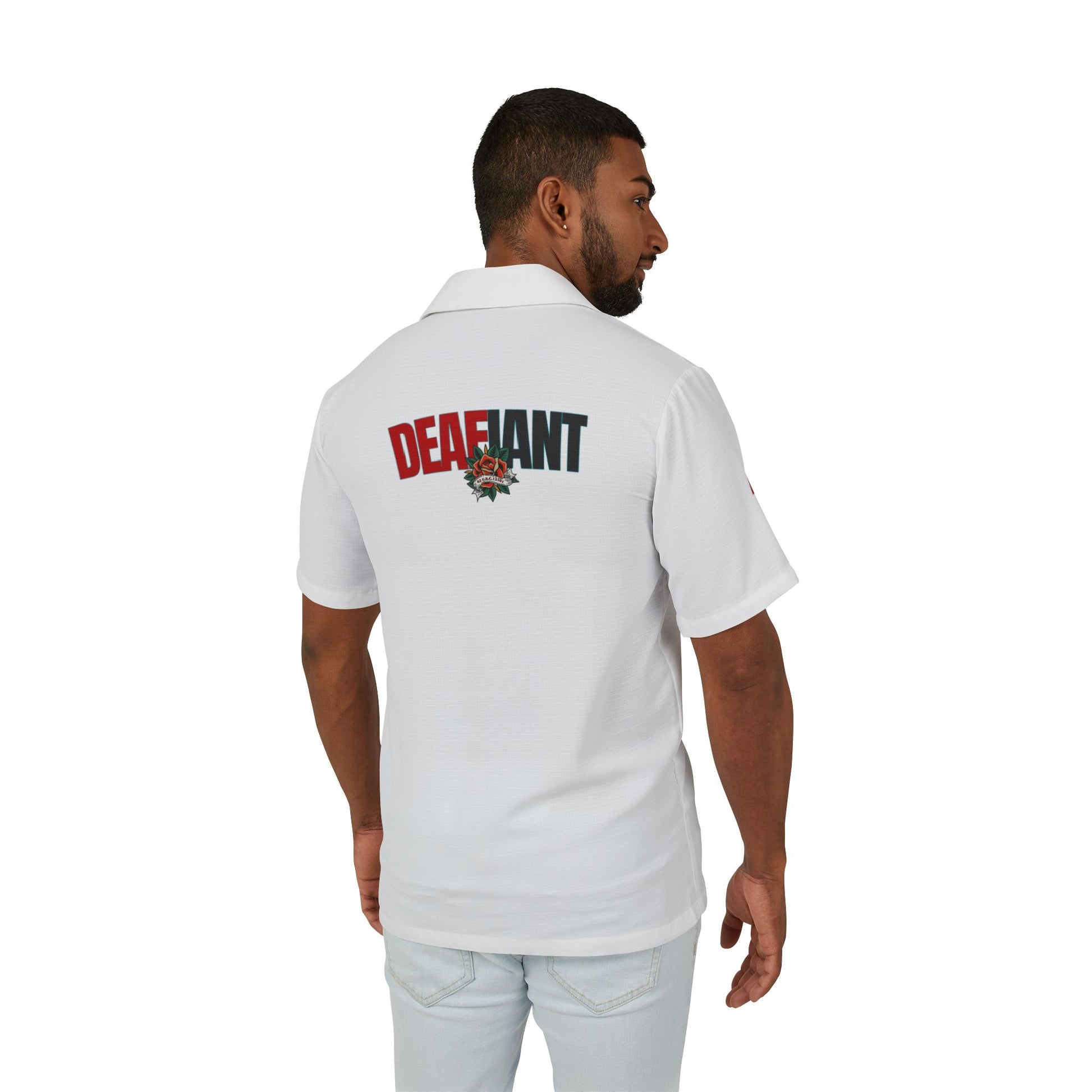 The DEAFiant Island Rebel Shirt is not your average Hawaiian. This camp-style button-down brings loud prints and louder purpose, with a relaxed fit and embroidered DEAFIANT tag that makes one thing clear: you don’t need volume to make waves.
